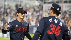 [사진]멋진 캐치 윤동희,'김원중과 하이파이브'