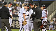 함덕주 ‘몸상태 이상? 자진 강판’[포토]