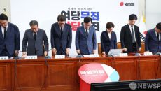 [서울=뉴스핌] 장동규 기자 = 송언석 국민의힘 원내대표와 지도부가 16일 오전 서울 여의도 국회에서 열린 최고위원회의에서 세- 2026-04-16 09:23