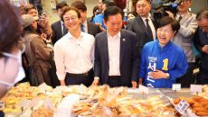 부산 부전시장 찾은 정청래·전재수 (부산=연합뉴스) 손형주 기자 = 더불어민주당 정청래 대표와 전재수 부산시장 후보, 서은숙- 2026-04-15 17:18