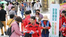 박은식 산림청장(앞 오른쪽)이 19일 청남대에서 나들이객을 대상으로 산불 예방 홍보를 실시하고 있다. [사진제공=산림청][대전- 2026-04-19 20:25