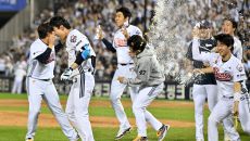 (엑스포츠뉴스 잠실, 김근한 기자) 두산 베어스 내야수 이유찬이 찬물 세례를 맞으며 환하게 웃었다. 연장 10회말 극적인 끝내- 3시간전