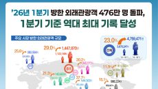 방한 외래객 476만명…1분기 역대 최대 기록 경신