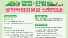 산림청은 오는 30일 '2026년 임업·산림 공익직접직불금(이하 임업직불금)' 신청·접수를 마감한다고 15일 밝혔다. 신청 대- 2026-04-15 13:00