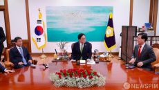 [서울=뉴스핌] 정일구 기자 = 우원식 국회의장이 15일 오후 서울 여의도 국회에서 여야 원내대표들과 회동을 하고 있다. 왼쪽- 18시간전