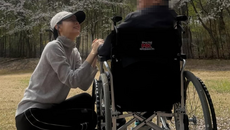 이영애도 효녀였다…무릎 꿇고 휠체어 탄 父 올려다보며 함박웃음