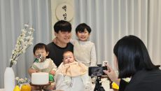 20일 서울 강동구 성내동 강동어린이회관 셀프 스튜디오에서 한 가족이 아이의 100일 기념사진을 촬영하고 있다. 회관 유휴공간- 20시간전