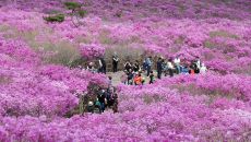 19일 대구 달성군 비슬산 대견사 인근 참꽃군락지에 곱게 핀 참꽃이 절정을 이룬 가운데 관람객들이 사진을 찍으며 연분홍빛 풍경- 20시간전