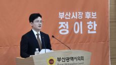 정이한 개혁신당 부산시장 후보가 20일 부산광역시의회에서 야구장 재건축 관련 정책 방향과 사업 구조에 대해 설명하고 있다. [- 2026-04-20 16:34