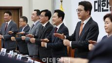 [이데일리 노진환 기자] 장동혁 국민의힘 대표와 송언석 원내대표 및 지도부가 20일 서울 여의도 국회에서 열린 최고위원회의에- 2026-04-20 09:42