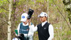 [포토] 송민혁, 캐디와 살피는 그린 경사