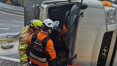 삼척 도계읍서 덤프트럭 전도...운전자 경상
