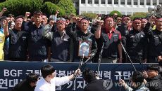 '조합원 사상' 화물연대, BGF·경찰 규탄회견…경찰과 한때 대치(종합)