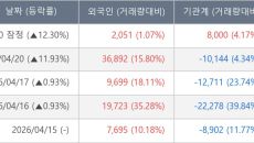[장중수급포착] 솔브레인홀딩스, 외국인 9일 연속 순매수행진... 주가 +12.30%