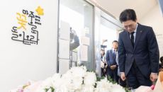 정원오 더불어민주당 서울시장 후보가 16일 오후 서울 중구 서울시의회 본관 앞에 마련된 세월호 기억공간에서 헌화하고 있다. 2- 2026-04-16 17:46