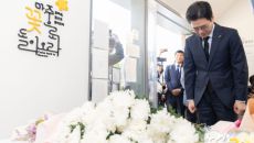 세월호 기억공간 찾아 12주기 추모하는 정원오 후보