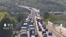 [실시간 포토] 남해고속도로 부산방향 사고...차량정체 현장