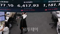 22일 서울 중구 하나은행 딜링룸 전광판에 코스피 지수가 전 거래일보다 29.46포인트(0.46%)오른 6417.93를 나타내- 2026-04-22 16:02