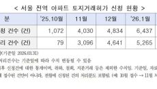 토허 묶인 지난해 10월 이후 최대 [파이낸셜뉴스] 지난 3월 서울 아파트 토지거래허가 신청 건수가 전월 대비 69.7% 늘었- 18시간전