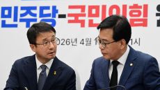 아시아투데이 이병화 기자 = 한병도 더불어민주당 원내대표와 송언석 국민의힘 원내대표가 16일 국회에서 열린 중동 상황 대응·극- 2026-04-16 12:58