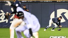 [사진]박해민 타구에 몸 날렸지만 놓치는 장두성