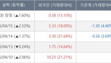 [서울=뉴스핌] 로보뉴스 = 16일 10시 15분 현재 테고사이언스(191420)는 전일 대비 2.62% (현재가 13,700- 2026-04-16 10:27