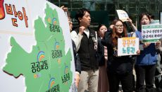 공공운수노조, '서울시장 교섭 촉구 및 지방선거 요구안 발표' 기자회견 퍼포먼스