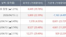 [서울=뉴스핌] 로보뉴스 = 16일 10시 15분 현재 인지컨트롤스(023800)는 전일 대비 1.54% (현재가 7,900원- 2026-04-16 10:23