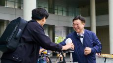 자전거 이용 출근하는 직원 격려하는 윤호중 장관