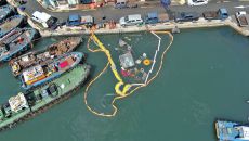 부산서 계류 선박 침수 후 기름 유출…해경 긴급 방제