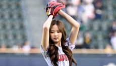 16일 잠실구장에서 열린 LG와 롯데의 경기. 트리플에스 이지우가 시구를 하고 있다. 잠실=박재만 기자 pjm@sportsch- 2026-04-16 19:05