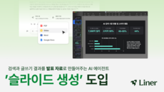 라이너가 인공지능(AI) 검색 결과와 비즈니스 문서를 발표 자료로 자동 변환하는 ‘슬라이드 생성 기능’을 도입했다고 17일 밝- 2026-04-17 10:15