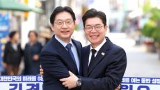 6·3 지방선거 더불어민주당 서울시장 후보인 정원오(오른쪽) 전 서울 성동구청장과 경남지사 후보인 김경수 전 지사가 21일 경- 4시간전