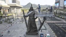 [현장영상] 이순신 동상 세척..."장군 시원하시죠?"