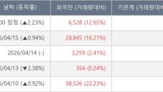 [서울=뉴스핌] 로보뉴스 = 16일 10시 15분 현재 솔디펜스(215090)는 전일 대비 2.23% (현재가 2,750원)- 2026-04-16 10:29