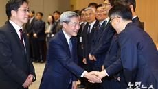 신현송 신임 한국은행 총재가 21일 오전 서울 중구 한국은행에서 열린 취임식에서 임직원들과 인사를 나누고 있다. ※CBS노컷뉴- 15시간전