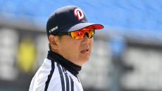 김원형 감독 ‘양석환의 타격 훈련을 지켜보며’[포토]