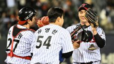 21일 잠실구장에서 열린 LG와 한화의 경기. 승리한 LG 선수들이 기뻐하고 있다. 잠실=박재만 기자 pjm@sportscho- 2026-04-21 21:47