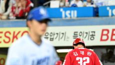 21일 대구삼성라이온즈파크에서 열린 SSG와 삼성의 경기. 9회초 2사 만루, 김재환이 미야지에 삼진을 당하며 아쉬워하고 있다- 2026-04-21 21:55