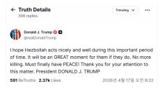 트럼프 "헤즈볼라, 바르게 행동하길...위대한 순간 될 것"