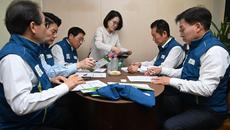 노숙인 복지시설 봉사관련 설명 듣는 정청래 대표