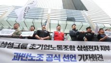 과반노조 공식 선언 기자회견 하는 초기업노동조합 삼성전자 지부