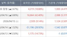 [서울=뉴스핌] 로보뉴스 = 17일 10시 15분 현재 엘앤에프(066970)는 외국인과 기관이 각각 4.70 만 주, 0.8- 2026-04-17 10:21