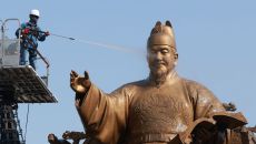 봄 맞이 세종대왕 동상 세척 작업 13일 오전 서울 종로구 광화문 광장에서 서울시 관계자들이 세종대왕 동상을 세척하고 있다.- 18시간전