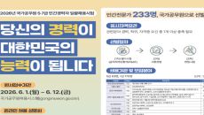 정부가 인공지능(AI)과 데이터, 산업안전 보건관리 등 분야에서 전문성을 갖춘 민간 경력자 233명을 올해 국가공무원으로 선발- 2026-04-17 00:00