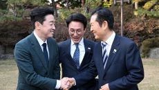 아시아투데이 박성일 기자 = 김민석 국무총리, 정청래 더불어민주당 대표, 강훈식 대통령실 비서실장이 9일 서울 종로구 국무총리- 17분전