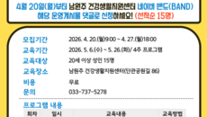 4월 20일(월) 오전 9시부터 센터 밴드서 선착순 모집 [스포츠서울ㅣ원주=김기원 기자]남원주건강생활지원센터는 심뇌혈관질환의- 22시간전