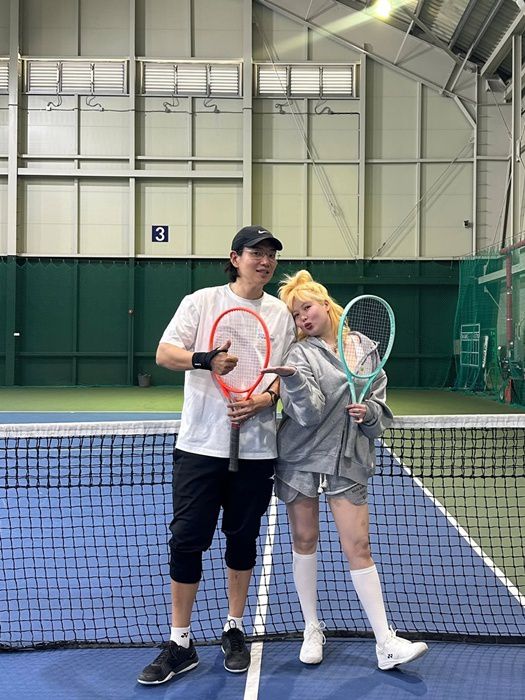 현아♥용준형, 요즘 뭐하나 했더니…장성규와 테니스 모임서 포착 [스타★샷]