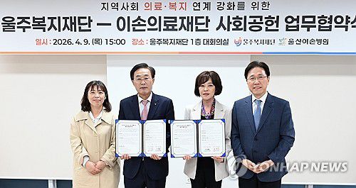 (울산=연합뉴스) 울산 울주복지재단은 이손의료재단과 지역사회 의료·복지 연계 강화를 위한 업무협약을 체결했다고 10일 밝혔다. 2026.4.10 [울주군 제공.재판매 및 DB 금지] young@yna.co.kr ▶제보는 카카오톡 okjebo ▶연합뉴스 앱 지금 바로 다운받기~ ▶네이버 연합뉴스 채널 구독하기 <저작권자(c) 연합뉴스, 무단 전재-재배포, A