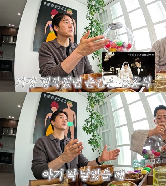 유지태가 아내 김효진을 향한 애정을 내뿜었다. 23일 유튜브 채널 '준호 지민'에는 "한명회를 매우 쳐라! '한 끼 줄게~ 스트 with. 유지태'"라는 제목의 영상이 게재됐다. 공개된 영상 속 유지태는 대학 동창인 김준호와 만나 여러 이야기를 나눴다. 유지태는 "가장 행복했던 순간이 언제냐"고 묻자, 망설임 없이 '결혼'이라고 꼽았다. 이에 대해 그는 "